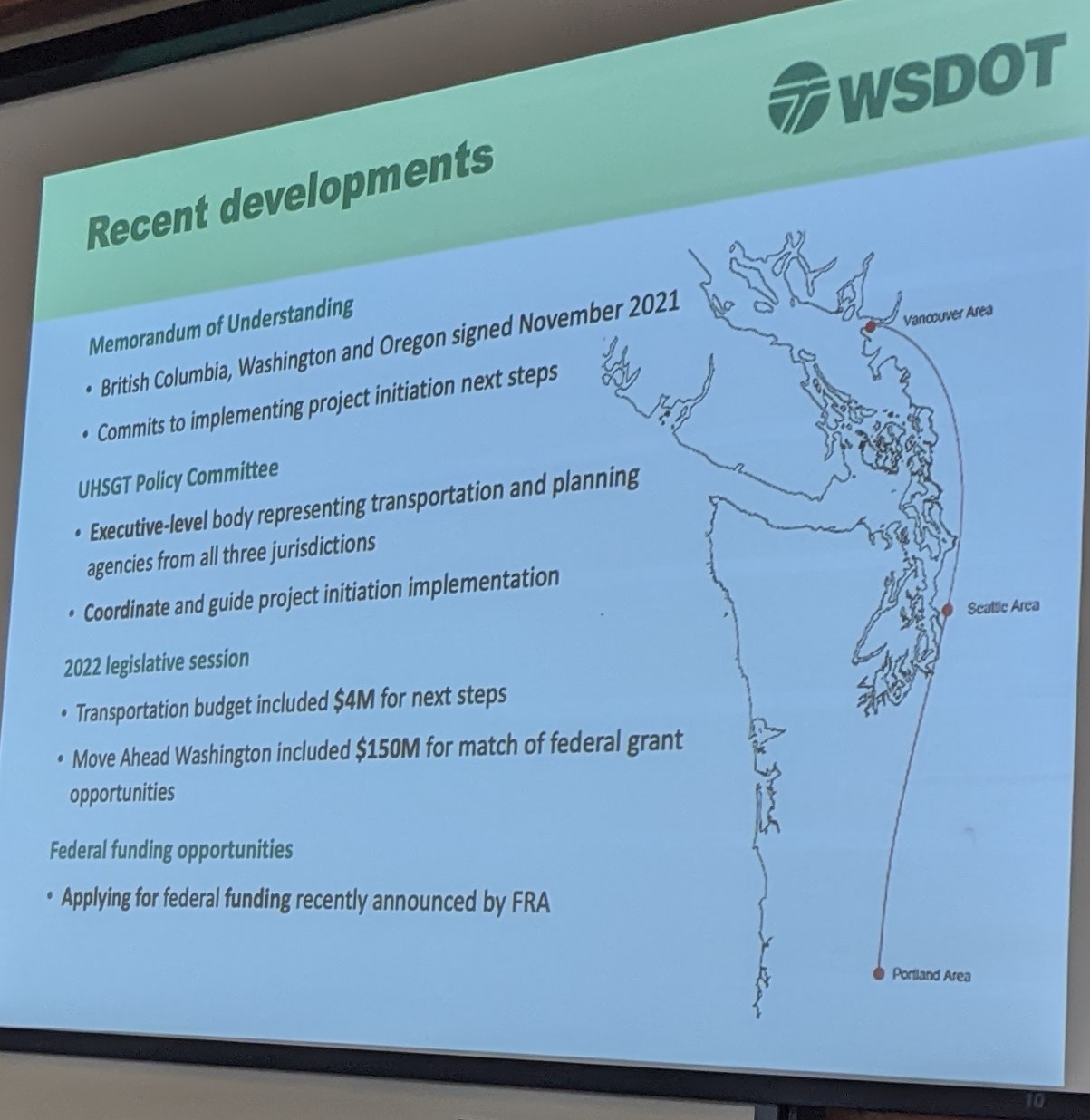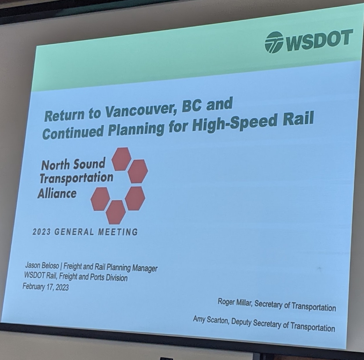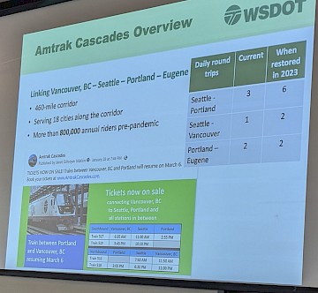 - The return of Amtrak Cascades to Vancouver, B.C. and continued planning for high- speed rail — Jason Beloso, WA State Department of Transportation Rail Office