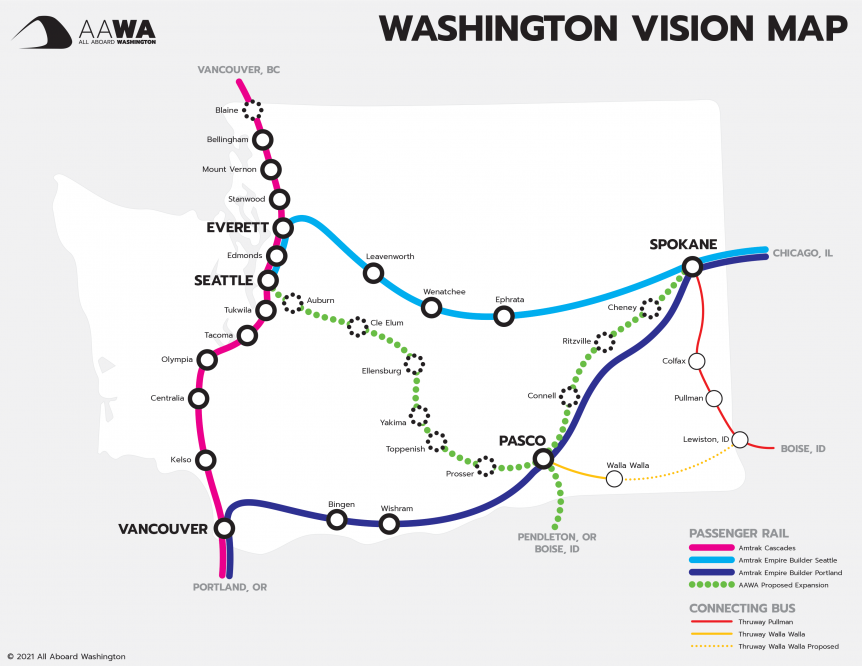 - Expanding the state-supported Amtrak Cascades passenger rail service